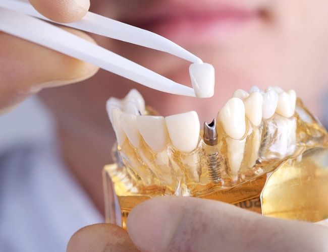 Una corona se coloca sobre un diente dañado o sobre un implante para restaurarlo, mientras que un puente reemplaza uno o varios dientes ausentes usando los dientes vecinos como soporte.